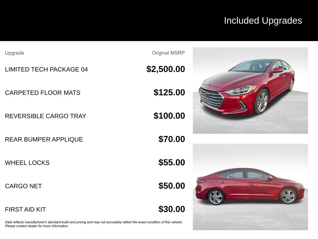 Scarlet Red Pearl 2017 Hyundai Elantra Limited FWD 6-Speed Automatic with Shiftronic 2.0L 4-Cylinder DOHC 16V28/37 City/Highway MPG