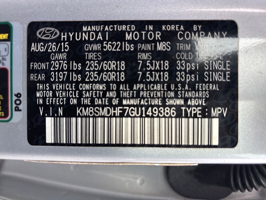 Circuit Silver 2016 Hyundai Santa Fe SE AWD 6-Speed Automatic with Shiftronic 3.3L V6 DGI DOHC 24V AWD, Gray Cloth.Recent Arrival! Odometer is 10774 miles below market average!