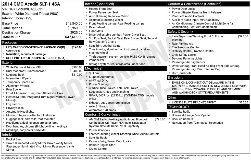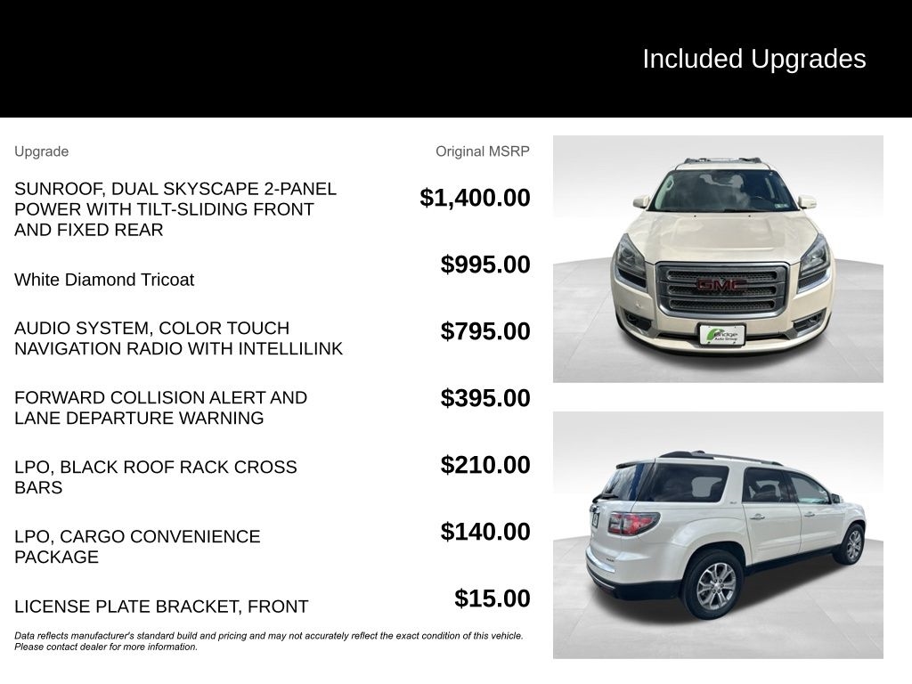 This 2014 GMC Acadia SLT-1 is a true gem, offering exceptional value and a wealth of premium features. We invite you to experience the exceptional craftsmanship and attention to detail that makes this Acadia stand out. Visit our showroom today and let us demonstrate why this vehicle is the perfect choice for your next SUV.